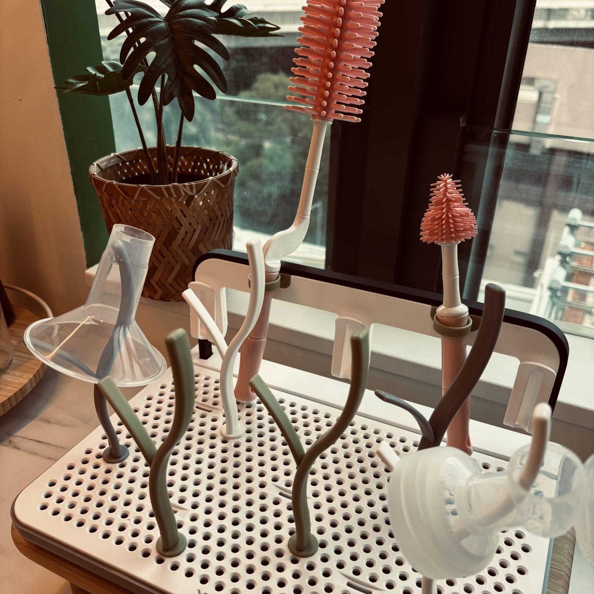 Usá un escurridor exclusivo para tus piezas de lactancia, mamaderas, tetinas y chupetes.